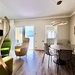 Con un balcón y una terraza, este alojamiento está equipado con un escritorio y ofrece comodidades como climatizador. La habitación está equipada con TV de pantalla plana con canales vía satélite para el entretenimiento de los huéspedes. El apartamento cuenta con 2 dormitorios. Esta propiedad frente a la playa dispone de 1 cuarto de baño con bidé, inodoro y ducha, así como secador de pelo y toallas.